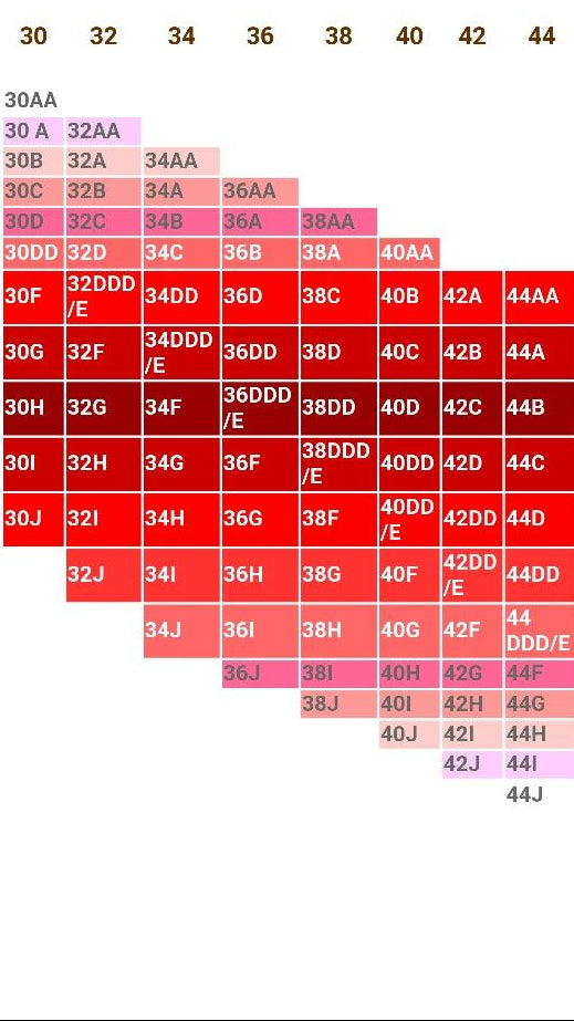 | 34AA | 34AA | 34A | 75A | 90A | 2AA | 12AA |