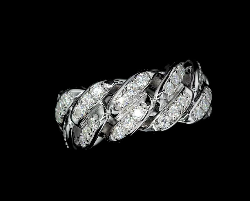 Step into bold elegance with Veylian, a hip-hop inspired eternity band that merges edgy Cuban chain artistry with the timeless sparkle of Moissanite. Perfect for statement-making moments, celebrations, or as a signature everyday luxury.