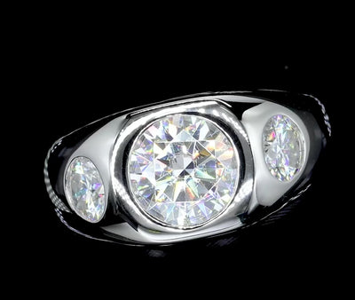 3CTTW D Color Moissanite Men’s Ring – 925 Sterling Silver, 18K Gold Plated