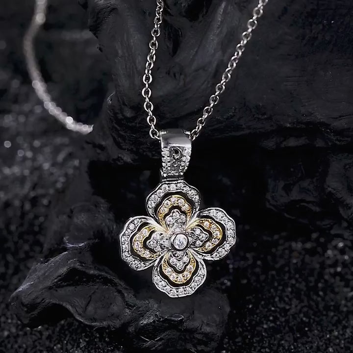 A talisman of fortune, elegance, and luminous beauty. This four-leaf clover pendant is meticulously crafted in S925 sterling silver and dual-plated in 18K yellow and white gold, housing a dazzling D-color VVS1 moissanite that captures light with every movement. Subtle yet radiant, it transforms everyday moments into expressions of refined sophistication.